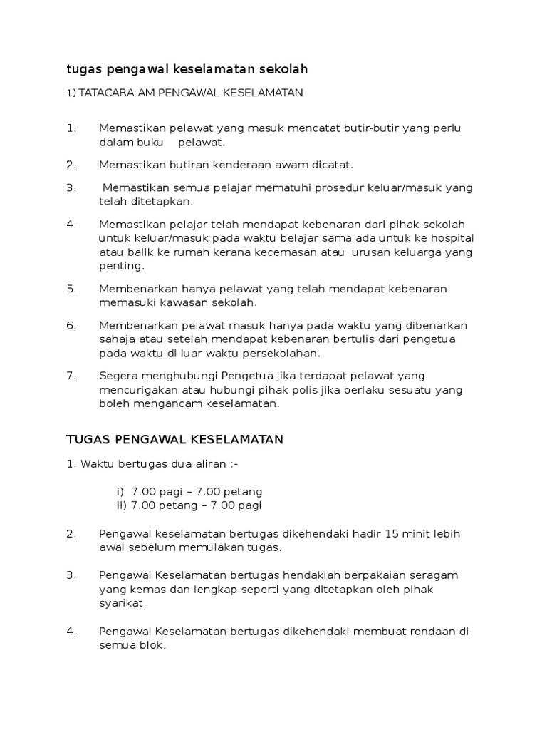 Tugas Pengawal Keselamatan Sekolah Pdf